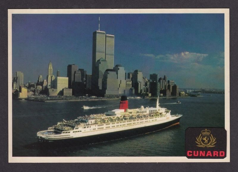 Cunard Liner Queen Elizabeth 2 departing New York Harbor Eastbound to Southhampton